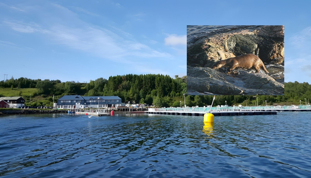 Anlegget på Ekkilsøya ble etablert av Akvaforsk for over 40 år siden. Målsettingen var å drive avls- og foringsforsøk på fisk som kom fra forskningsstasjonen på Sunndalsøra. Siden er anlegget også vært mye brukt i utprøving av nytt utstyr. Nå har en annen kommet til anlegget og herjer vilt i nøtene. En fredet oter, men nå skal den felles. Oteren ble fredet i 1982, men har hatt skuddpremie fra 1899-1982. Lever hovedsakelig av fisk og sjømat som den fanger på grunt vann. ( Foto: Mowi/ BN)