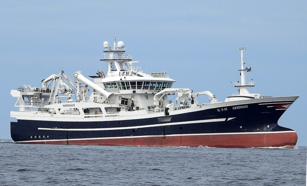 Mye flott innen fiskeri: Den kombinerte snurperen/tråleren " Hardhaus" av Austevoll fra 2021 er miljøvennlig med batteripakke, elektrisk dekksmaskineri og varmegjenvinning. Dermed har rederiet mottatt støtte fra Enova for å kunne realisere byggingen. <( Foto: Leif M.Andersen)