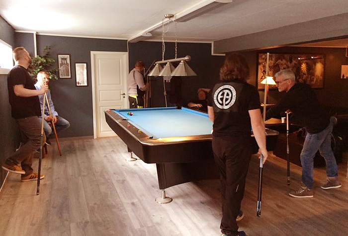 Har du hatt lyst till å prøve biljard, så er det muligheter for det. I Kirkvågen på Bremsnes, i kjellerern til Matkroken-butikken er det laget et flott lokale som Averøy Biljardklubb(ABK) har ordnet med relativt nylig. En dag i uken skal klubben være åpen for alle, hvilken dag det blir kommer senere. Fine lokaler er innredet til biljard og slikt her i Kirkvågen. ( Foto: ABK) En krok med dartspill hører med . ( Foto: ABK)