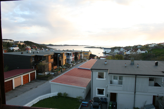 Selvfølgelig sperrer blokka endel, men det er fin fri sikt sørover. De nederste etasjene på boligkomplekset har vesentlig dårligere utsikt i og med alle hus i Måseveien.
