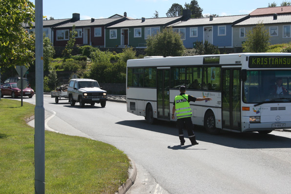 Politi var til stede og dirigerte trafikken til sentrum over Viadukten.