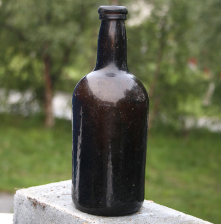 Slik ser en hel flaske ut fra 1870; denne er i brunt glass (boa)