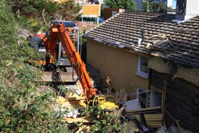 En gravemaskin har her fjernet påbygget som ble bygd tidlig i 1970 årene.