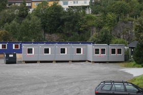 Det er oppsatt flere anleggsbrakker på tomten ved Handelskompaniet innerst i Vågen. Dette er mannskapsbrakker for arbeidsstokken som driver med tunnelen. Det vil bli jobbing hele døgnet når tunnelen er forbi Karihola, og da blir det vel ekstra mannskaper som skal drive på. Det er også leid rom på Atlanten camping.