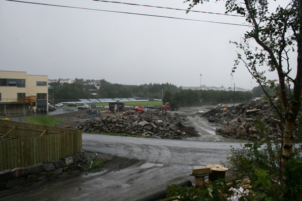 Litt steinørken ennå. Bak steinen kommer skøytebane som noen ildsjeler har klart å få til. Dette kommer vi helt sikkert tilbake til. Da blir det å prøve skøytan igjen da.