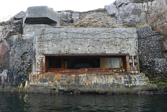 Fra sjøsiden i 1943 så det slik ut under bygging av Kolvik Torpedobatteri.