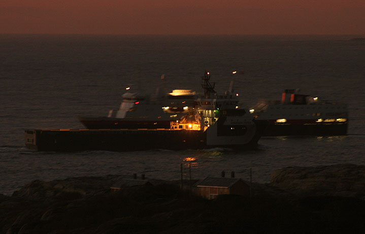 Da det mørknet, passerte "Bourbon Topaz" og "Vesterålen" Meldalsholmen og Revhammeren.