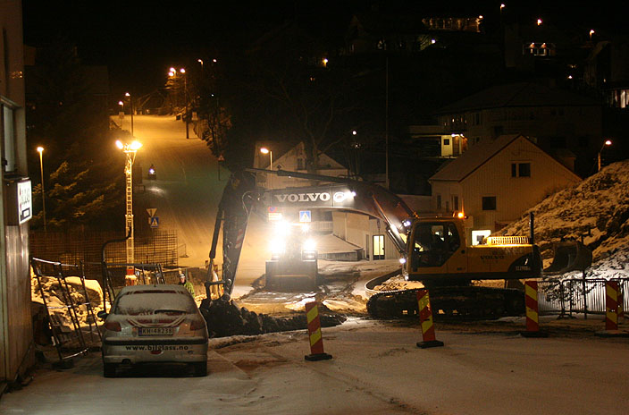 Nå kl.21:30 mandag er Dalabrekka stengt fra krysset Hagelin-Krana og oppover mot Stortua. Det er graving rett over veien i forbindelse med anleggsarbeidet som foregår.