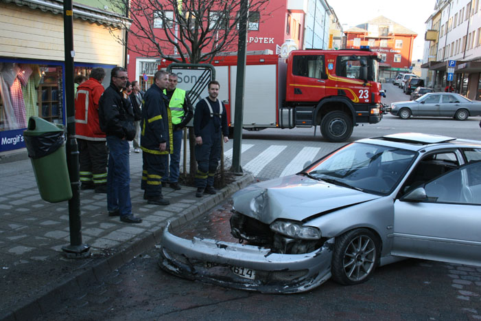 Bilen krasjet også i en lysstolpe langt inne i Gågata. Lykken er at ingen ble feid ned under kjøringen. Dette kunne ha gått mye verre. Det antydes at det er sykdom som skyldes dette uhellet.