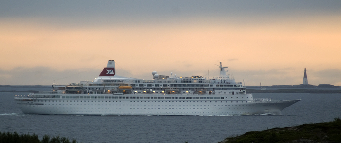 Om kvelden dro Fred Olsens "Black Watch" forbi byen. (Foto: Tom E.Felberg)