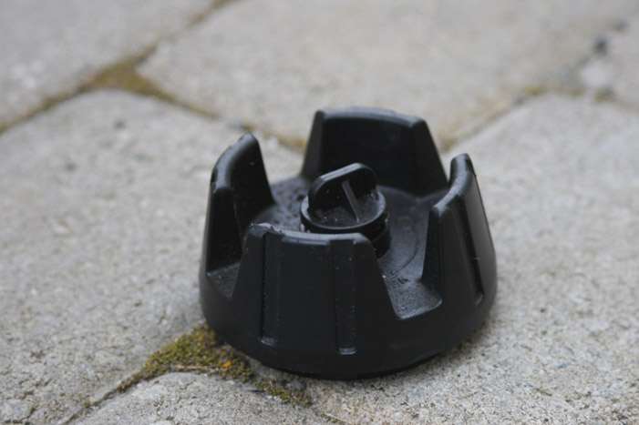 Rett ved brannstedet lå denne toppa på en bensintank for bruk på påhengsmotor. Med stor sannsynlighet stammer denne fra kanna som brandt. Toppa er tatt vare på.