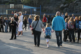 Det var første skoledag i dag fo rmange her fra området. Noen av førsteklassingene var skeptisk, mens andre gikk på med friskt mot. Alt hører med den dagen én står litt på egne føtter og må slippe handa til far og mor.