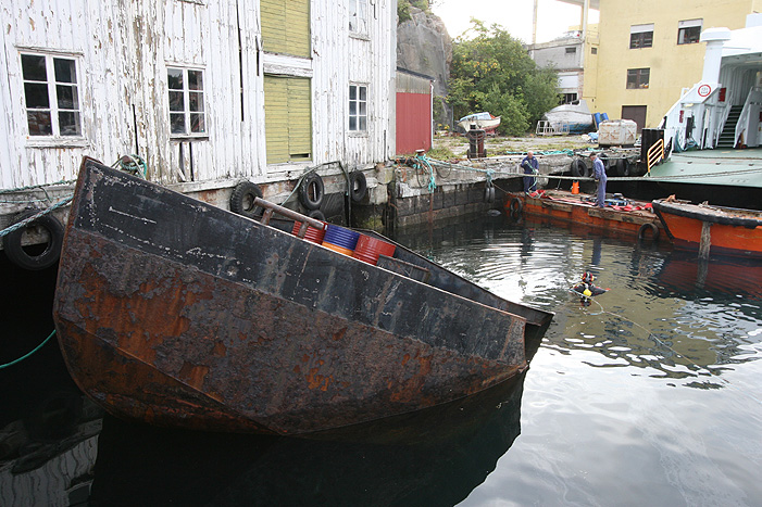 Det er her rett ved brygga lekteren sank for noen dager siden. Lekteren skal tilhøre Anne Kamsvåg som også står som eier av denne gamle brygga.