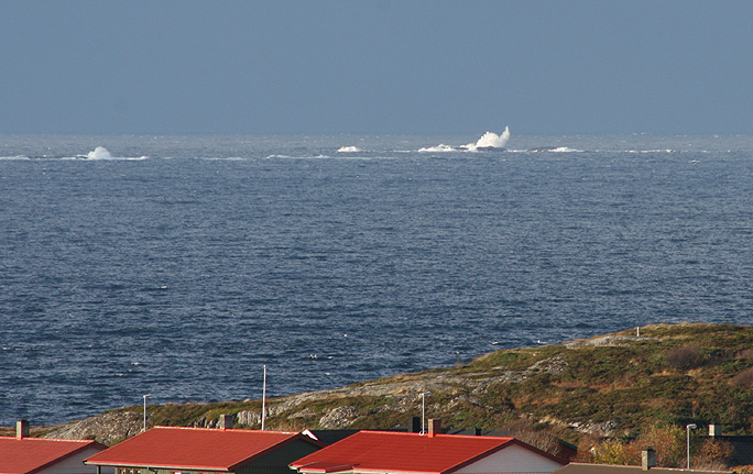 Her ryker det verste av de store havdønningene ute i Treflisleia og skjærene der.