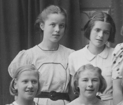 Vi har fått vite at jenta 3 tallet er Aud Soleim(født Branem) og ved 4 tallet hennes tante Gerd (de er født samme år). Hun ble gift Halvorsen og flyttet til Banaveien rundt 1959. Bildet er fra pikeklasse på Allanengen rundt 1939 får vi fra Elisabeth Soleim oppi Myra. Også Thom Brandtzæg som bodde i Banaveien, nå Oslo, kjente igjen Gerd Halvorsen her.