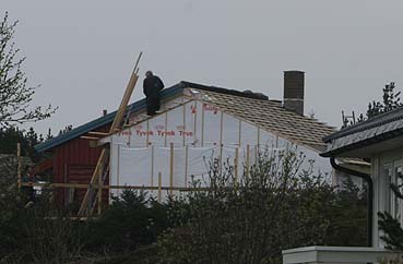 Det pågår betydelige utvidelser av et bygg i Trålveien i Karihola. Dette er er flott område helt ut mot firområdene i nord, og husrekka her har i tillegg god utsikt utover havet mot Grip og skipleia.