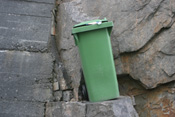 Noen har satt papirdunken her oppe på en fjellhylle i Freiveien.