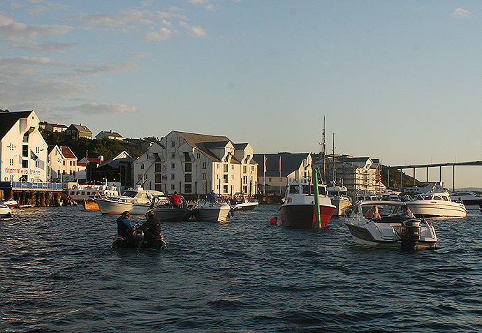 Her strømmer folk på gjennom bl.a Sørsundet i kveld. Bak en Skandi båt på vei ut.