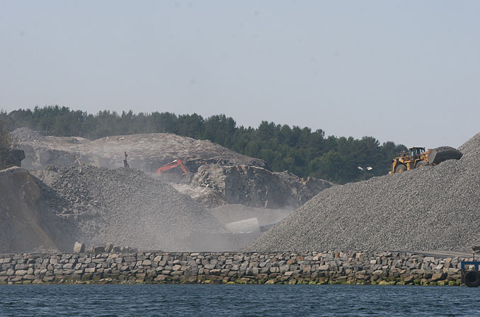 Litt lenger inn, i Kristvika utenfor Bruhagen går maskiner for fullt for å ta ut masse og lage base for oljevirksomheten.