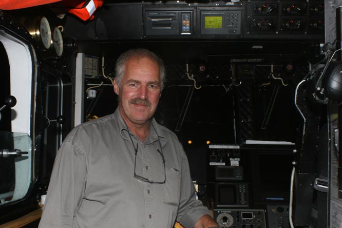 Sigmund Kaplanski er skipper ombord og fra Kristiansund. Han har vært 32 år i redningsselskapet, derav 10 år som skipper.Vi ble bedt ned på kaffe og en prat om alt mulig og gamle dager nede i lugaren. Det er 3 manns besetning ombord.