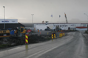 Inne på Vestbase holder de også på med dette store røret fra Løkkemyra som skal lede gate og regn/smeltevann ut i sjøen.