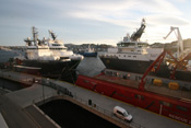 "Stril Odin","Havila Mercury", "Olympic Poseidon", "Far Scorpion ""Olympic Zeus" ligger på rekke og rad . Lenger vest lå den svære "Normand Subsea 7"