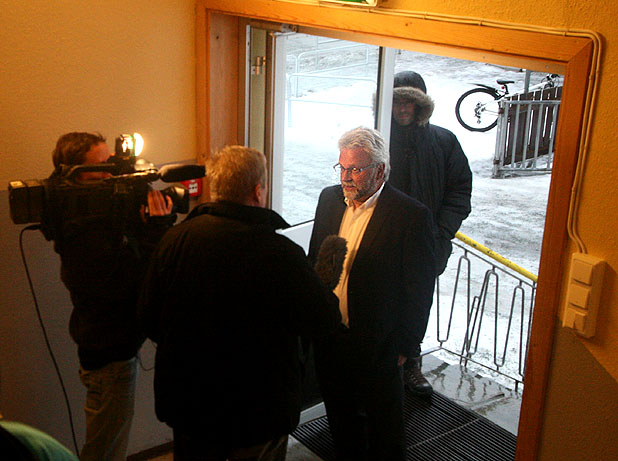 Det er en tung dag for rektor Paul T. Søvik på Dalabrekka som plutselig har mistet to elever. Her intervjues han av TV 2.