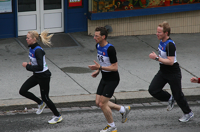 Maratonløper og TKs bidrag Anders Tøsse (midten) ble nummer tre i dag. Sikkert altfor kort løp for han.