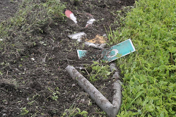 Et fart og vikepliktskilt og RV 70 sklit ble trøsket ved utforkjøringen.
