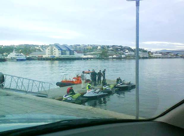 Politiet var snar å komme til når flere vannscootere la til ved pongtongen ved Piren i 20 tiden torsdag. Det har vært endel skriverier om ulovligheten å bruke disse scooterne, men vi har hatt endel henvendelser som sier at hvis de er registret i småbåtregisteret så er de lov og bruke.