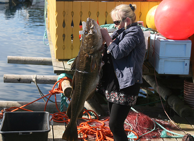 Ikke småtterier: Wenche Horne fra BN løfter på en sværing som veide rundt 24 kilo med innmat.