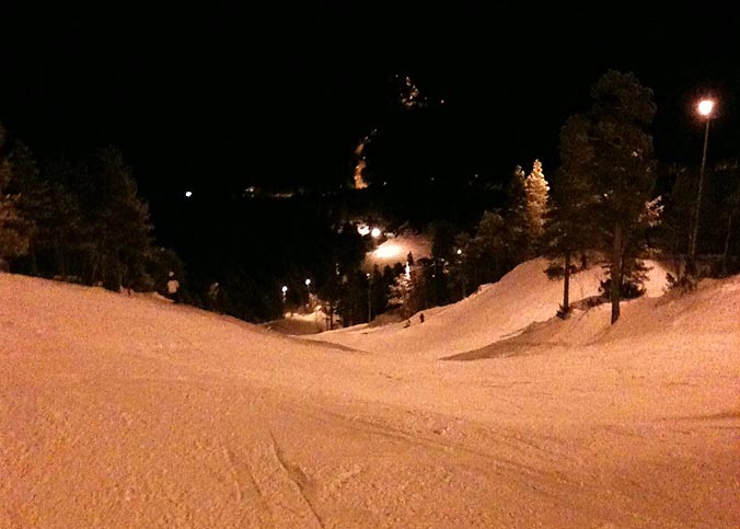 Fra toppen av bakken i går med nok snøunderlag til skifrelste. (Foto: Rune Aanes)