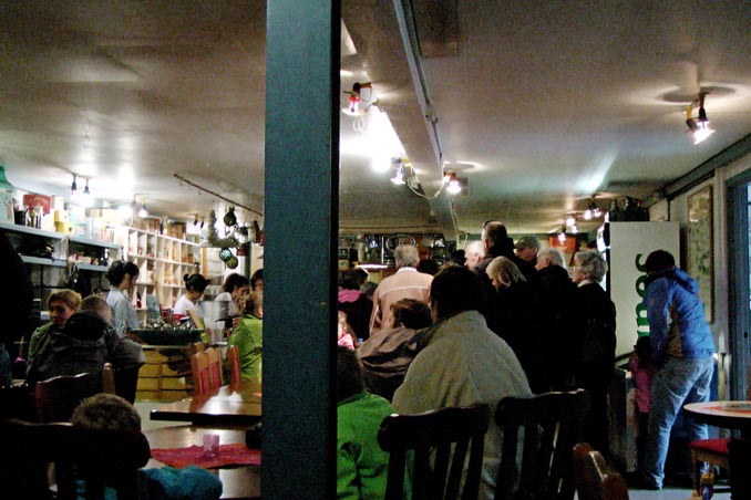 Det var stor pågang i kafeen som hadde gjort klar vafler, pølser og rømmegraut m.v. (Foto: Ken Robert Haltvik)