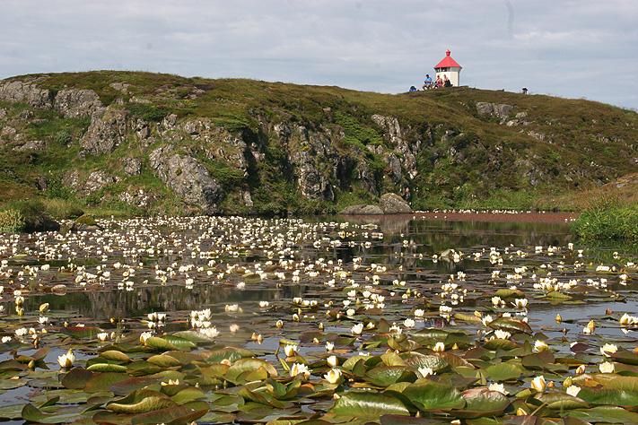 I noen vann rett innenfor kyststripen finnes masser av nøkkeroser. Her ved Nordneslykta ved Farstad.