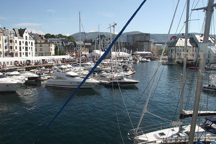 Utsikt fra Ålesunds bacalaorestaurant ved hurtigbåtkaia.