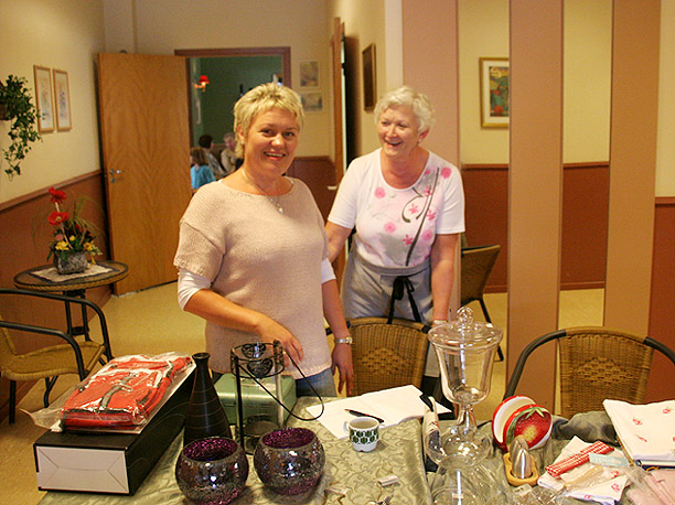 Her to av de som stod for loddsalg ute i korridoren; f.v Britt Sissel Vevang og Liv Jorid Smørholm.