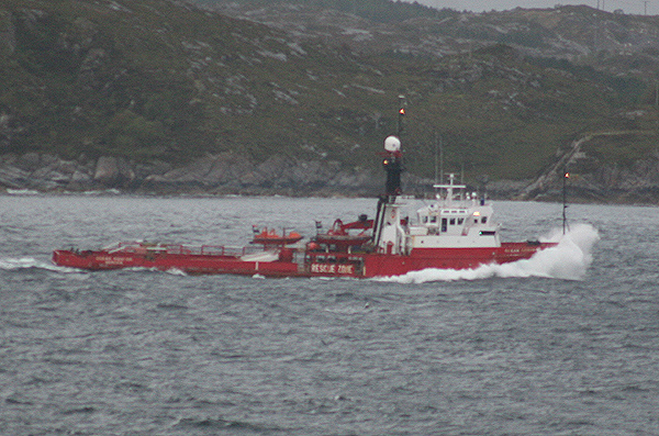 Slepebåten "Rusken" som hadde med lekter med boligmoduler på Dale.