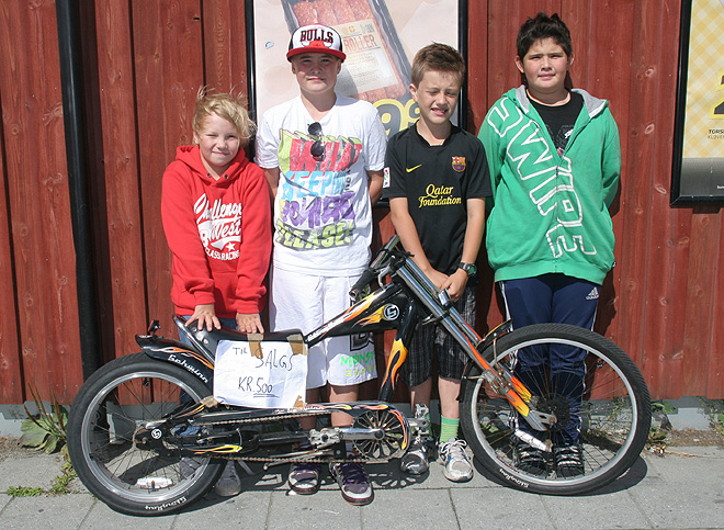 Denne gjengen stod ved Bunnpris i Brunsvika med en Harley tråsykkel som de prøvde å selge i dag. Sykkelen skal være fra USA, og er den eneste i byen av slikt kaliber fikk vi høre.