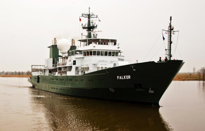 RV "Falkor" tilhørende Schmidt Ocean Institute oppdaget skuta "Terra Nova" på 330 meters dyp ved Grønland.