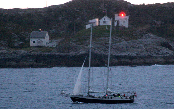 En danske kom direkte fra Buholmen-området nordfra og gikk rett til Kristiansund. Det er vel nordnorgeturistene med egen båt som karrer seg hjem før stormsesongen kommer."Skydancer" heter denne store seileren.