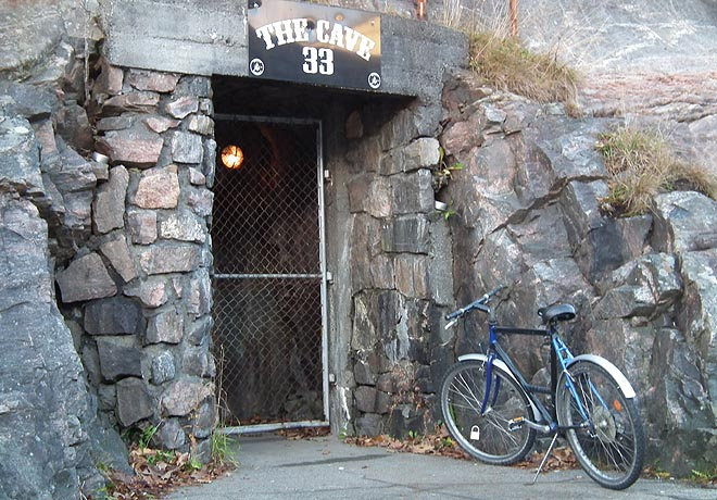 Utenfor motorsykkelkubben Hunters sin bunker i fjellet ved Dalabrekka skole kunne folk i dag kun se en trøsykkel. Går det nedover "mé sa Deivis-karrain borti bin ?"