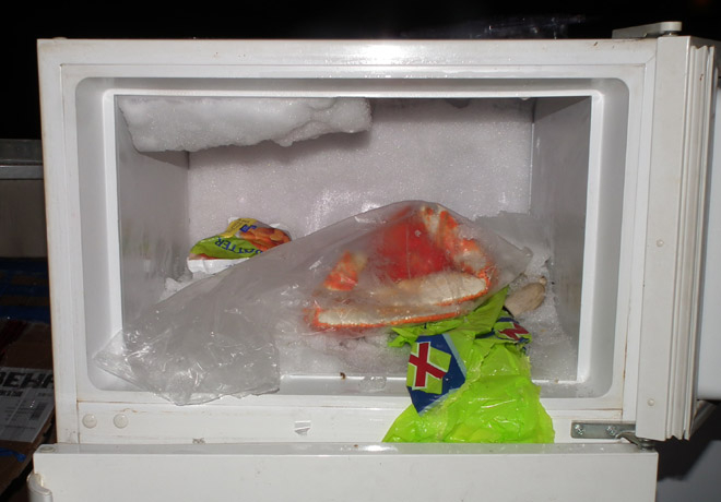 Mye rart å se i smutthull her og der på byen. Dette da..en frosset hummer i et kombinert kjøle/ fryseskap som stod på en oppsamlingsplass for elektriske apparater en plass på Nordlandet. Merkelig å ikke ta ut denne da...har det vært brudd og ingen ble enige om å dele innholdet spør leseren som sendte oss fotoet.