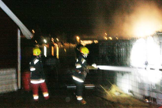 Veggen her var veldig varm, og eieren var heldig at brannen ble oppdaget raskt av naboer over sundet på Ekkilsøya. På brannstedet ble det antydet at en nødrakett kan ha landet i garnkontainerne.
