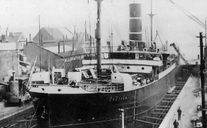 Lastebåten "Henry" torpedert sammen med hurtigruta "Irma" nord for Hestskjæret Fyr i 1944. Flere omkomne. Skipet funnet på 200 m dyp rundt 2001 av undervannsfarkost.(Foto: Ukjent)