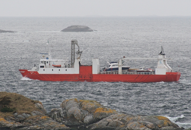 Kystruteskipet som skulle levere salt til fiskeindustrien på Veiholmen i Smøla tok ikke sjansen å anløpe fiskeværet under det dårlige været i helga. Dermed ble saltet losset i Kristiansund og satt på lager på Devoldholmen til et kystruteskipet "Folla " kommer om vel et døgn . Saltlasten ved trucken skulle til Veiholmen, men ble losset her i byen grunnet uværet. Det var "Nyksund " som ikke tok sjansen på skjærene ute i Smøla i helga. M/S "Folla" kommer og henter saltlasten for å bringe denne til Veiholmen om halvannet døgn.