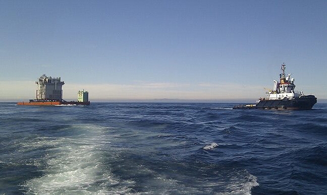 Slepebåten "Union Boxer" kom inn med noe som skulle til kjempekrana. (Foto: Geir Tøvik)