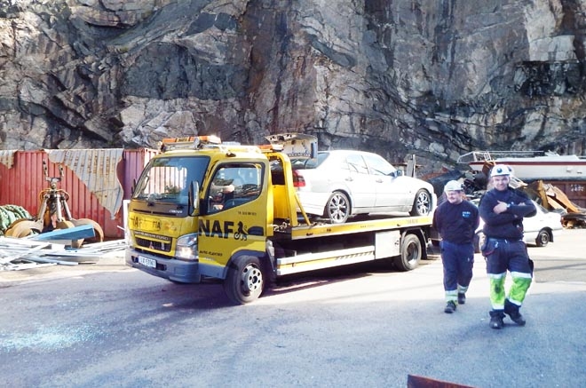 NAF-bilen kom i går med to biler som skulle vrakes. Området er asfaltert, og det letter arbeidet med kjøring med maskiner får vi vite.