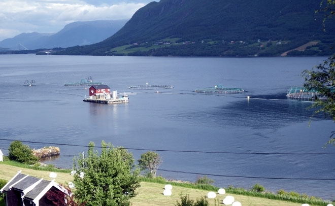 Fra laks taes opp av sjøen i Norge, går det 36-48 timer før den er kommet i butikkene på det asiatisle markedet. Her Harine Harvest sitt oppdrettsanlegg på Meek på innersiden av Averøya.