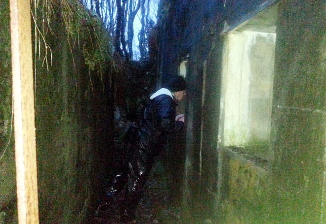 Under en tur ute på Hustadvika kom vi til å kjøre inn på en skogsvei for å være litt i le for stormen. Her dukket det plutselig opp en bunker ved veien, og en liten tur i terrenget i et forferdelig regn, var det flere bunkere her. Området er nedgrodd, og er ikke så mye omtalt som festningsområde. Vi får ta en tur og lete opp det som er der ved anledning. Bunkere i skog ved Hustadvika, langt unna de store fortene på Bud og Ergan på Bud. Litt har vi funnet om dette " avglemte" anlegget i ettertid, men dagen vi kom hit var ikke mulig å lete litt grunnet værbruket.