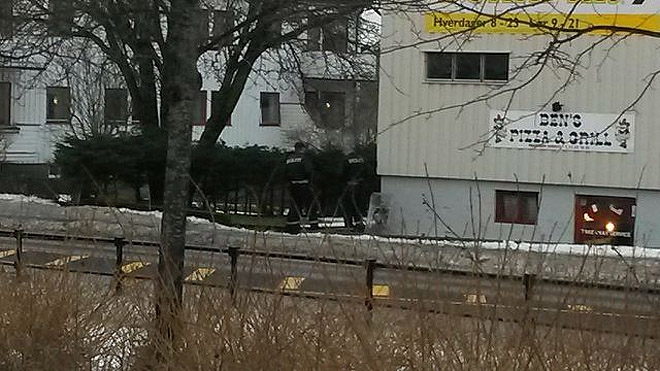 Fra stedet ved St.Hanshaugen. Etter andre meldingen vi får er politiet på jakt etter en blil med personer som har forlatt stedet. ( leserfoto mobil)
